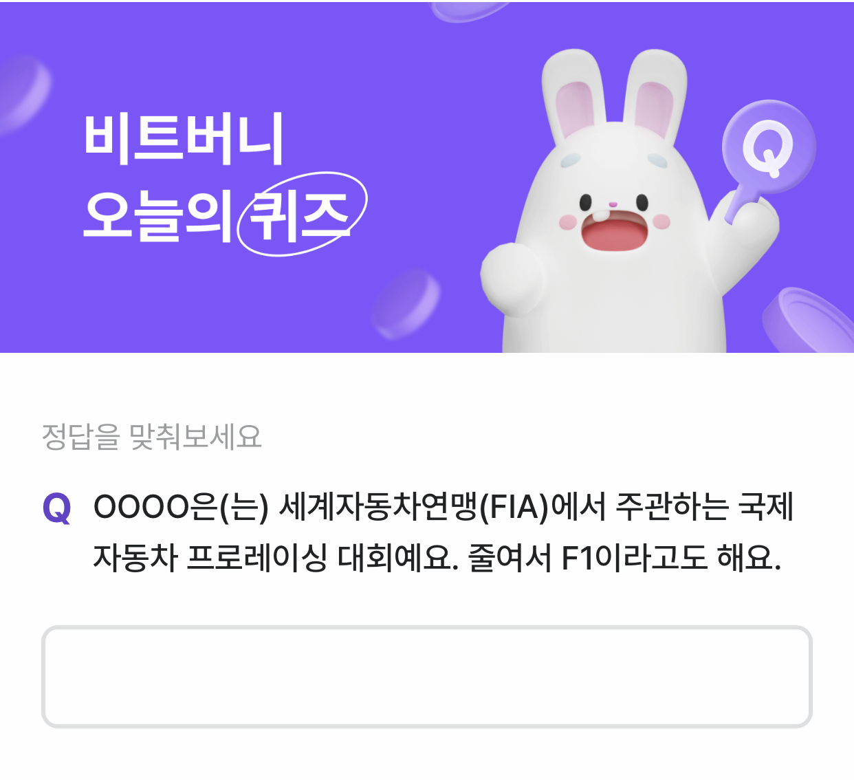매일 새로운 문제를 통해 여러분의 상식을 테스트하고, 정답을 맞추면 다양한 리워드를 받을 수 있습니다. 참여 방법도 매우 간단합니다. 비트버니 앱을 실행하고 오늘의 퀴즈 섹션에서 문제를 풀면 됩니다.