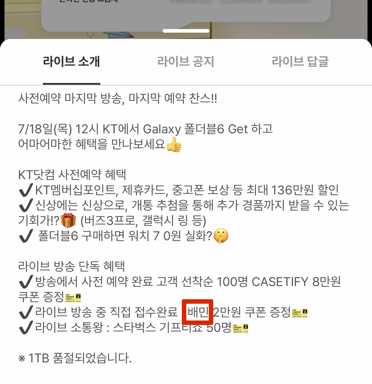 KT닷컴 폴더블6 사전예약 마지막날 최대 136만원 할인! 라이브 방송 중 직접 접수만 하면 OO 2만원권 증정!
