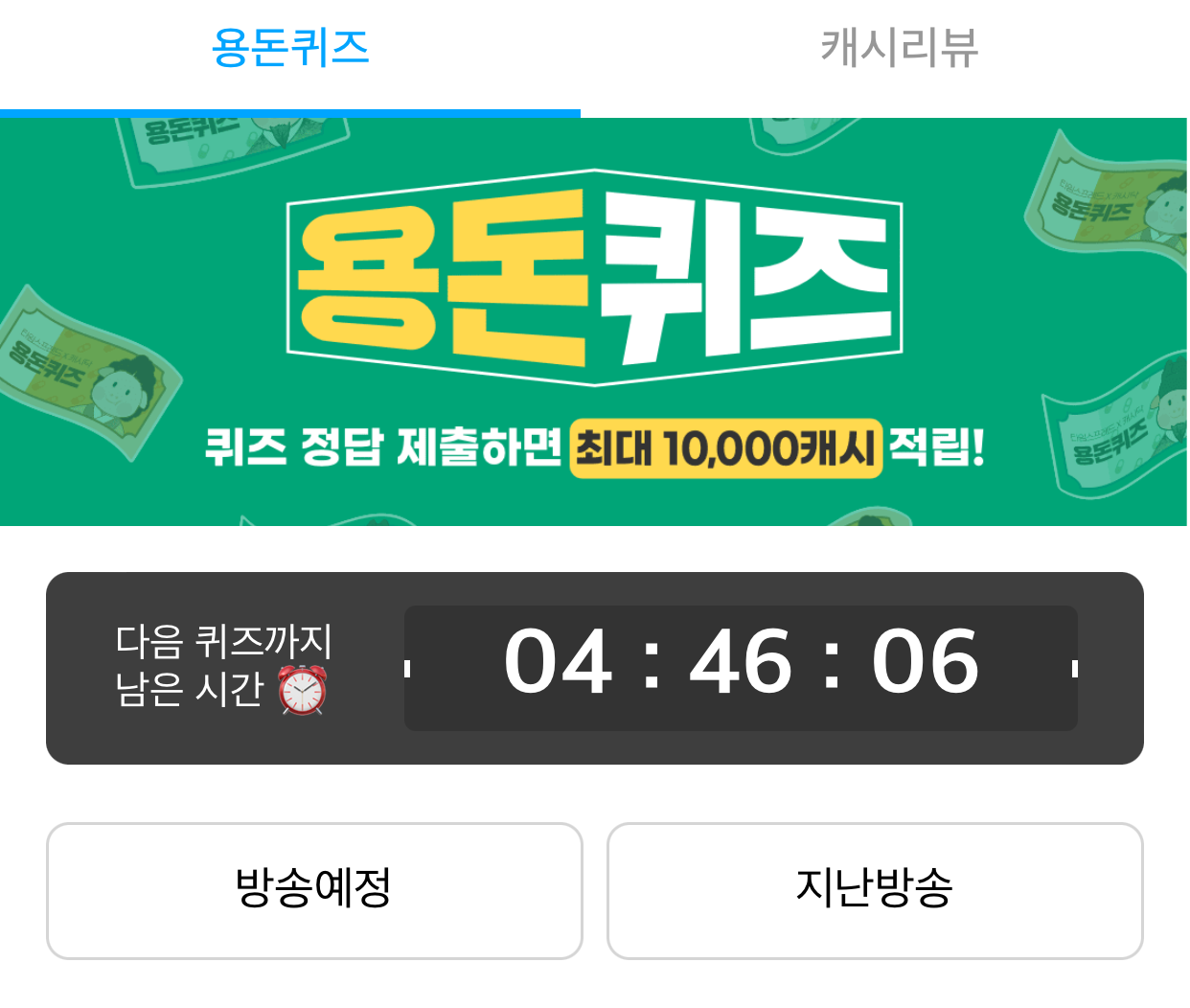 다음 퀴즈까지 남은 시간이 있고 알림을 설정하면 퀴즈 출제시간에 참여할 수 있어요!