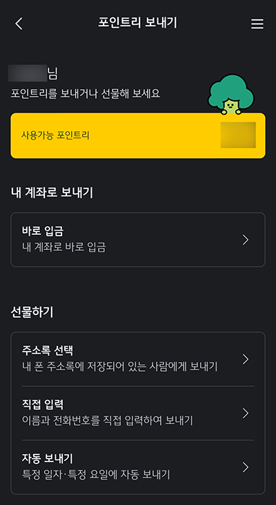 퀴즈도 중요하지만 매일매일 출석체크도 중요해요. 포인트리를 받을 수 있거든요. 포인트리는 교환하거나 사용할 수 있고 보내거나 굴릴 수도 있어요!